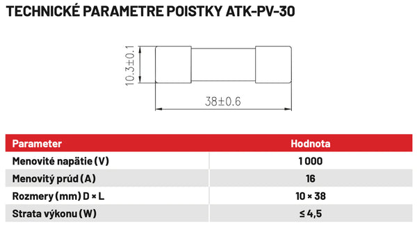 Puzdro je naplnené chemicky spracovaným vysokopuritným kremičitým pieskom, ktorý v kombinácii so špeciálnymi chemickými látkami účinne tlmí elektrický oblúk vznikajúci pri rozpojení obvodu. Konce poistky sú bodovo zvárané a pevne spojené s kontaktmi, čo zaisťuje dlhodobú stabilitu, nízky prechodový odpor a bezpečnú prevádzku aj pri náročných podmienkach fotovoltických inštalácií.