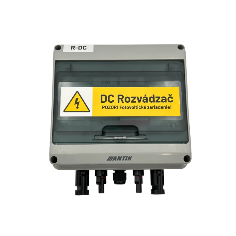 Vybavená zvodičmi prepätia, ANTIK DC rozvodná skrinka chráni dva stringy fotovoltiky pred škodlivými účinkami prepätia.