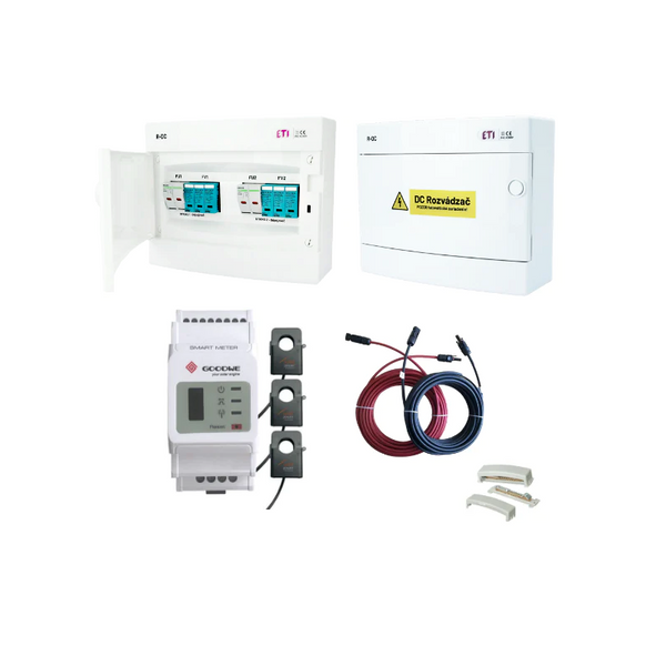 Elektroinštalačná sada: Obsahuje DC a AC rozvádzače, sieťovú ochranu, 25m kabeláže pre každý DC string, zemniacu svorkovnicu a smart meter.