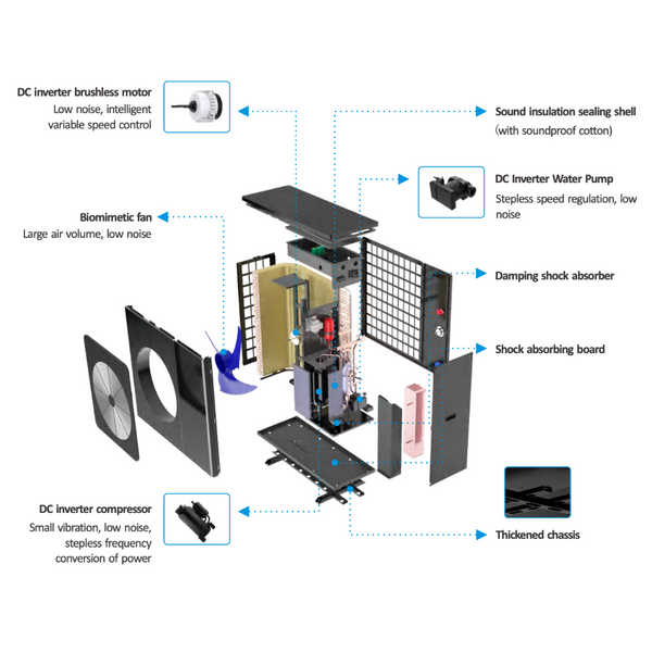 Tepelné čerpadlo na princípe kompresie a expanzie chladiva odoberá teplo z okolitého prostredia a odovzdáva ho obiehajúcej vode v systéme. Nespotrebúva teda elektrickú energiu priamo na ohrev vody ale používa ju iba na chod kompresora a obehového čerpadla, samotné teplo je odobrané doslova zo vzduchu, vďaka tomu je možné pri spotrebe 1kW elektriny vyrobiť až 4kW tepla.
