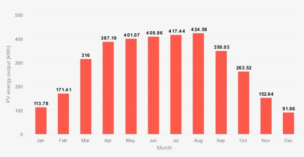 Objem vyrobenej energie záleží na rôznych okolnostiach. Priemerne však sada s výkonom 5.1 kWp môže vyprodukovať približne 5508kWh ročne.